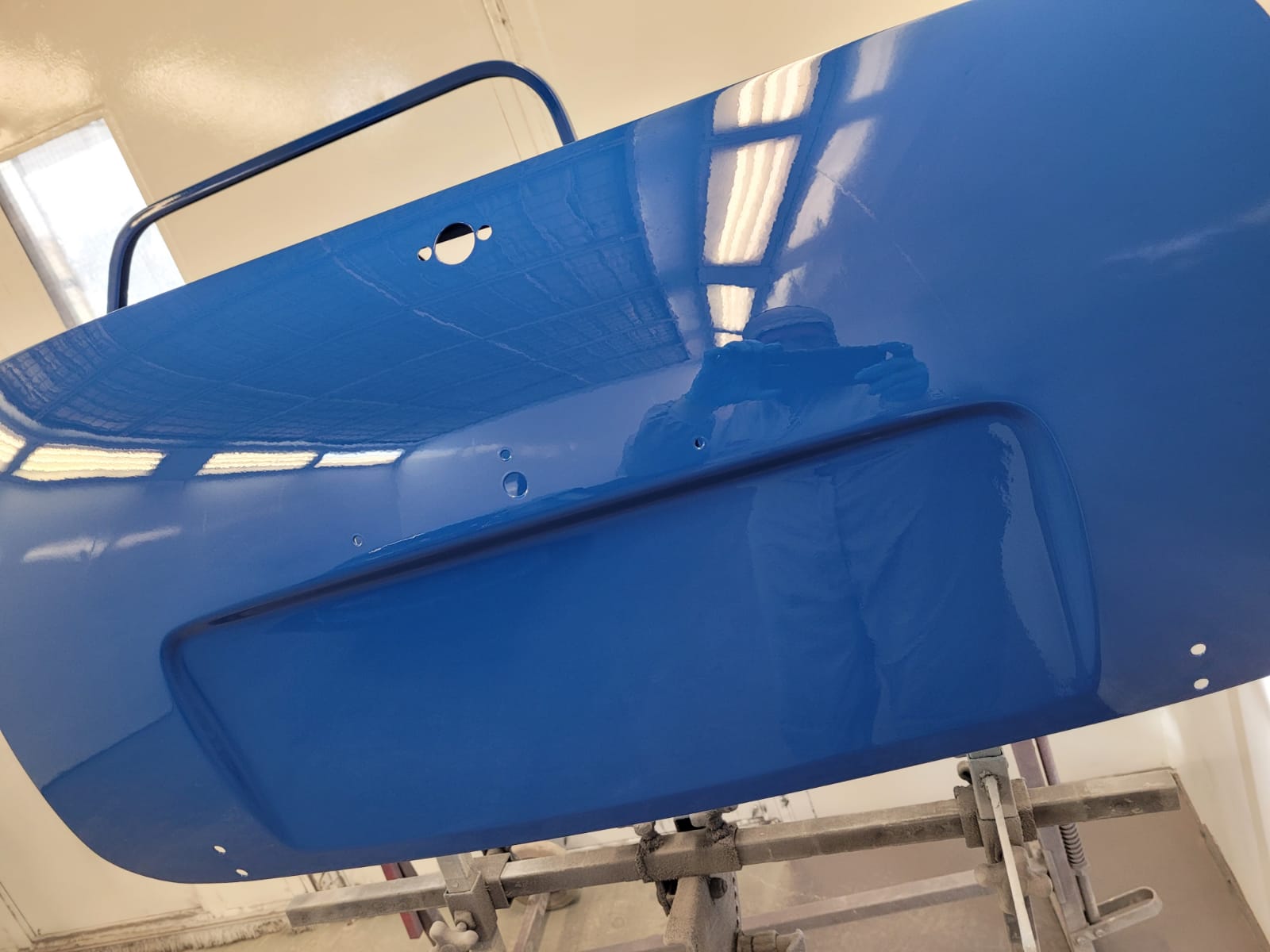 The restoration continued apace with most of the body work repairs being at the front end of the car. Both outer wings, the front panel, door steps and outer sills were all that needed to be replaced. A couple of repairs to the flitch panels and the rear valance at the rear and we were done! The body was subjected to the usual sealing up and the application of Raptor on the underside before the body was sent away for painting.